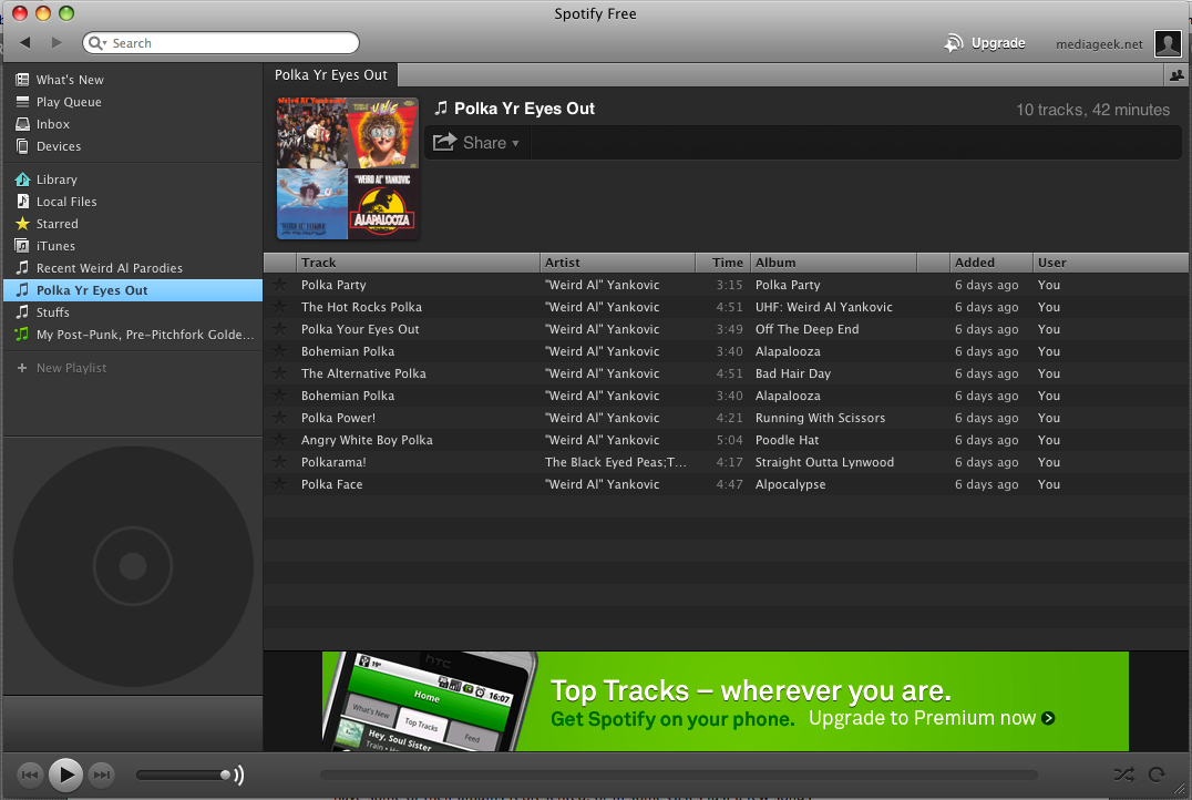 Frankly, if I’d wanted a paid music service I’d already be Rhapsody subscriber. That service costs the same as Spotify Premium, offers similar desktop and mobile features, and has been available in the US for much longer. However Rhapsody also has gaps in its catalog, missing artists like the Beatles and AC/DC which aren’t found on Spotify, either.