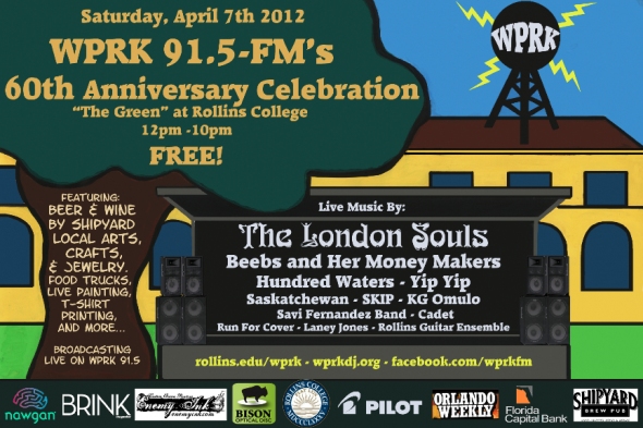 Rollins College radio station WPRK is celebrating its 60th anniversary with a fundraiser and a free all-day event and live broadcast today from the Rollins College campus in Winter Park, Florida.