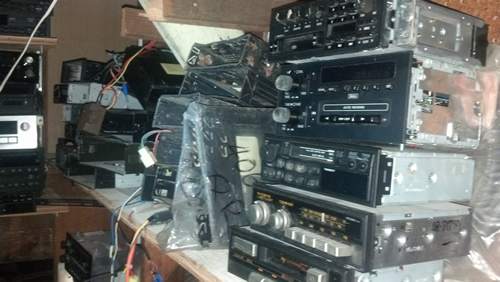 Just got a new car audio/radio device installed over at New Sound car stereos on Valencia Street in San Francisco. New Sound is an awesome place: great selection; fast service; I love my new system. But on top of that, it has a wonderful secret: a magnificent basement crypt of ancient car stereo/radios.