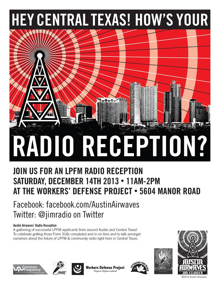 I was happy to see that our friend Jim Ellinger’s Low Power FM event last Saturday in Austin, Texas went well. “Half a dozen applicants, commissioners and academics, radio talent and sponsors showed up,” the Austin Airwaves Facebook page reports. “A phone in call from Ian Smith of the Prometheus Radio Project answered a lot of questions. Good meeting!”