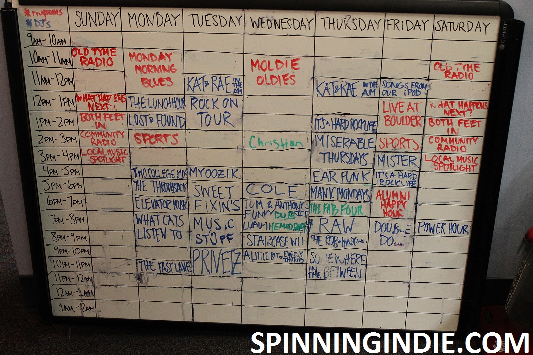 WLOY airs programming 24 hours a day, 7 days a week, every day of the year. Live shows happen from 11am to 11pm and pre-recorded programming airs during other times and on the weekend. Although the staff and DJs are mostly students, there are also a couple of community volunteers and some alumni DJs. There are around 80-100 DJs at WLOY, with some shows having up to 3 or 4 hosts. Devecka said that they try to have pairs of DJs hosting a show, but that there are also some solo hosts.