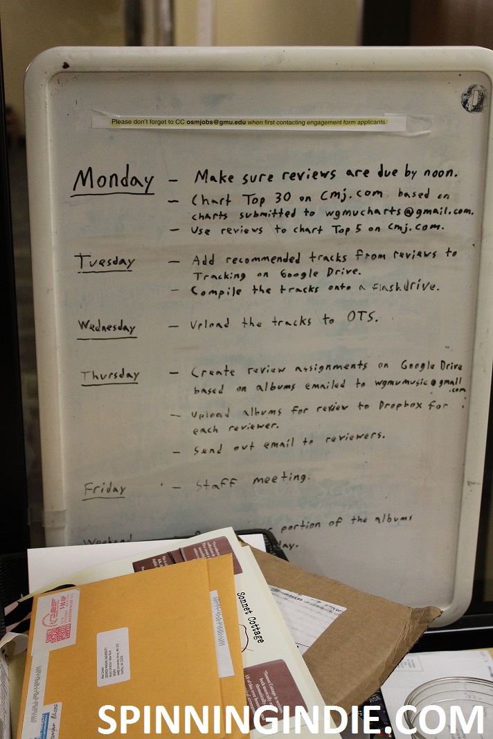 Smith then showed me around the Office of Student Media, which is home to not only the radio station offices and a practice studio, but also the headquarters for Mason Cable Network (a student-run television station) and student publications. Smith and the student radio station managers have their offices in this building, which means that the Music Director, for example, works out of a building far removed from the radio studio.