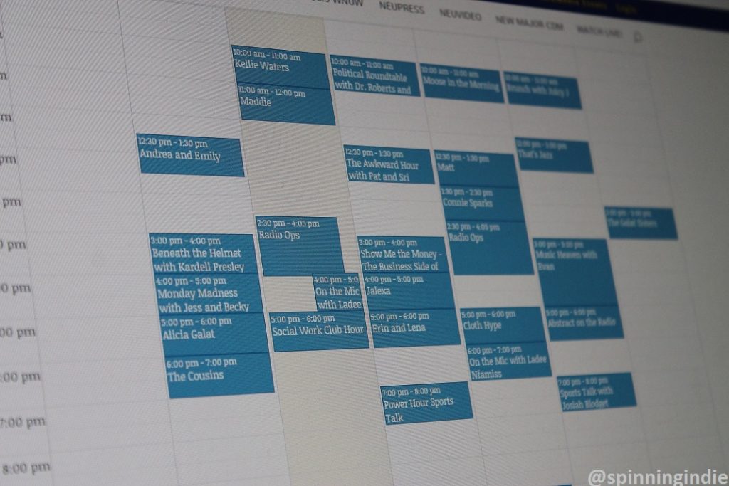 In addition to its public affairs and talk shows, WNUW plays a lot of music and has students managing music submissions. McDonald explained, “…I would say predominantly we are music-driven and we are music-driven from every spectrum…We have a professor that does 50s and 60s jazz on Fridays. He calls it ‘That’s Jazz.’ Then we have students that are country only or pop only or whatever I feel like playing today.” When there isn’t a live program, the station’s automation system kicks in, playing a selection of music that would likely be heard during hosted shows. McDonald said that the range of genres includes “brand new, throwbacks, country, rap [and] oldies.”
