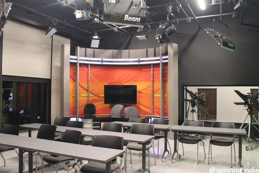 Neumann University has been incredibly supportive of the station’s move to FM and in addition to the license, the station also received a studio in the brand new John J. Mullen Communication Center on campus. Dedicated just two weeks before my visit, the shiny new digs are expansive (10,000 square feet of space for all of the school’s media and communications activities) and state of the art.