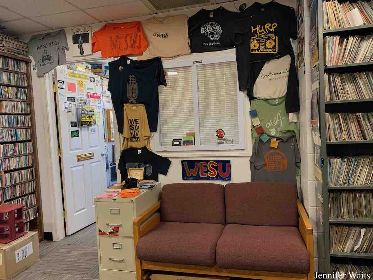 It’s no surprise that the home of one of the oldest still-operating college radio stations, WESU 88.1 FM at Wesleyan University in Middletown, Connecticut, is full of typical student radio artifacts. The walls are plastered with band stickers, posters and flyers. And most rooms contain shelves of CDs, vinyl records and cassettes. In fact, there’s so much physical music that the collection spills over into boxes and bins stashed here and there.