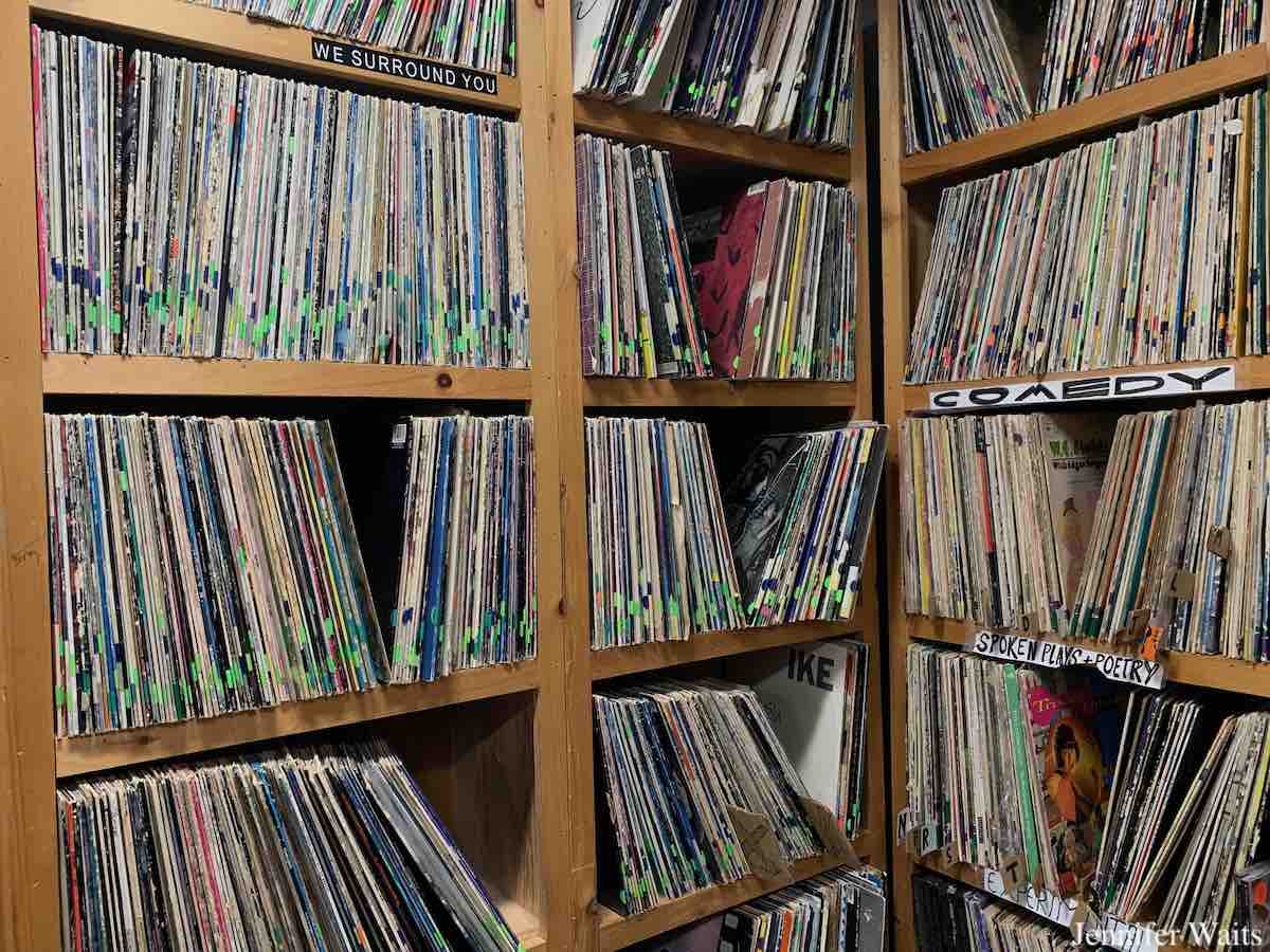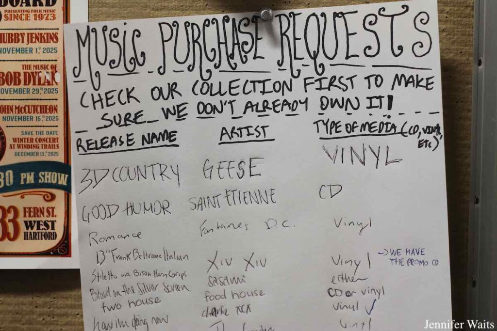 Michael loves radio and the experience of music discovery through the stacks, telling me, “We’re all fed by these algorithms and just introducing somebody to the library and the idea of reading liner notes and using them as a cross-reference to guide you on this scavenger hunt…That’s my own experience with music here at WESU and I try and introduce students and community members to that and get them outside of the bubble a little bit.”