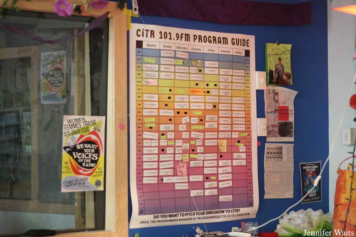 Made up of both students and non-student participants, the CiTR schedule (comprised of around 90 shows) is probably around 50% student-produced programming according to Yip. He noted, “And that’s great, because when I started, it was more like 75 community, 25 percent students. So it’s really started to shift towards students, which is what we like to see.” He likened the station to “a student club house,” and pointed out how even the decor has shifted in recent years because of students.
