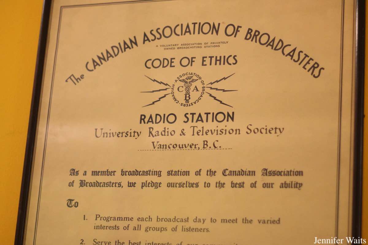 Interest in radio and broadcasting at UBC stretches back to 1919, when a wireless club was formed on campus. Before there was ever a broadcast station at UBC, the radio club presented lectures on a variety of topics, including broadcast station design. By 1930, the club was touring local radio stations and making plans for a future broadcast. A few years later, in November 1934, the radio club received a proposed budget request in the hopes of setting up a shortwave broadcasting station. A 1938 mention in student newspaper, The Ubyssey, referred to the group as “the shortwave club” and by 1939 the club was connecting with other university stations over shortwave.