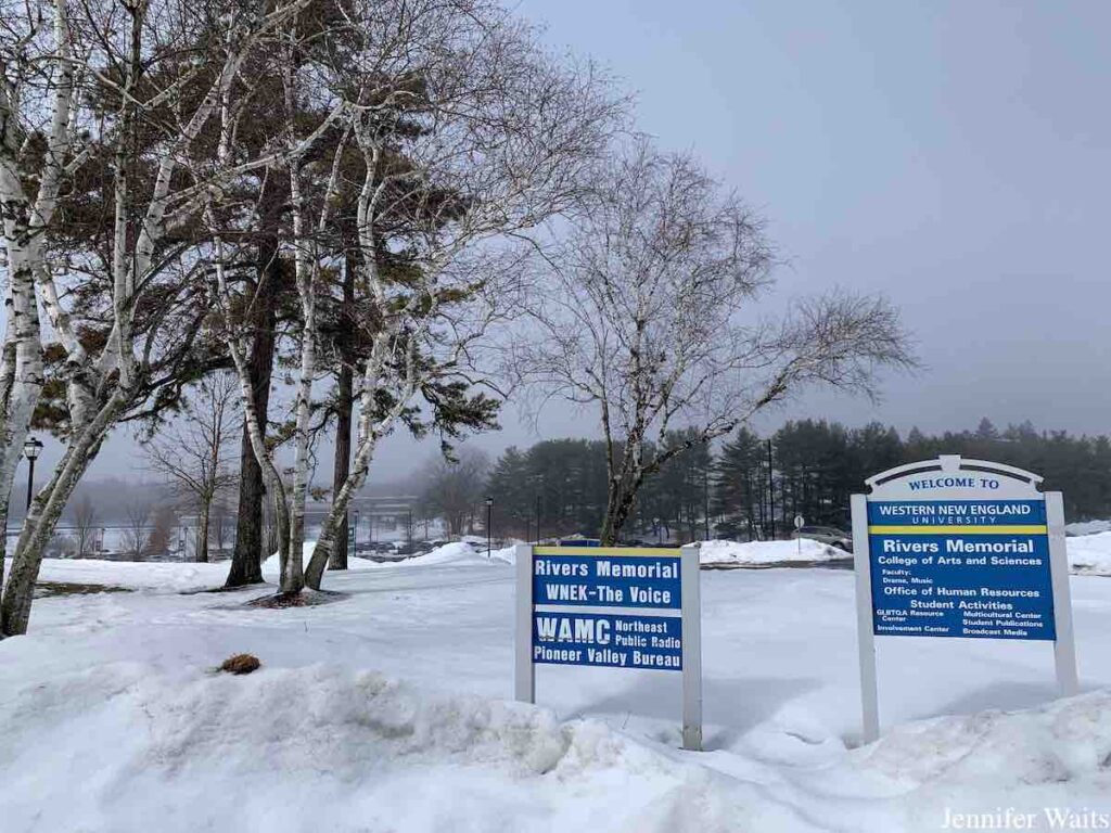 Before knowing any of this history, on a frozen foggy March morning I navigated snowy and icy roads on my way to visit Western New England University’s college radio station WNEK “The Voice” in Springfield, Massachusetts. In the midst of its 50th anniversary celebration, the station has been hosting a variety of events, including a birthday rave and commemorative broadcast.