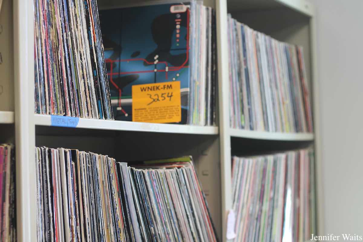 An online-only station, WNEK gave up its FM license in 2014. When it launched in 1976 as a 10 watt class D FM station, it used the call letters WTRZ, changing them to WNEK (for “Western New England Kollege”) in 1979. Its frequency shifted around the dial over the years, not uncommon for lower wattage class D FM stations, which often struggle to be heard on the crowded radio dial. Looking closely at some of the older records at the station one can spot “WTRZ” scrawled on cardboard album covers, evidence of those short-lived call letters.