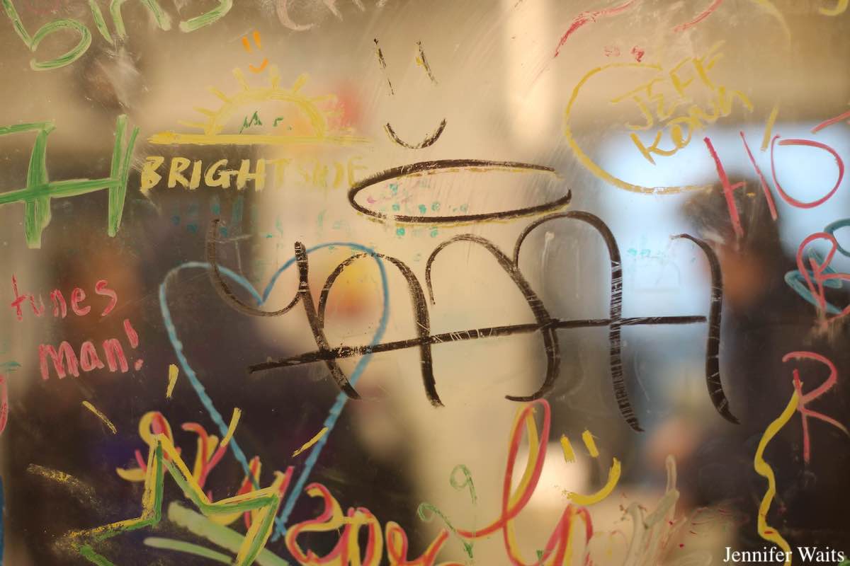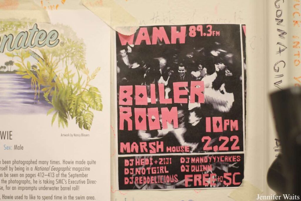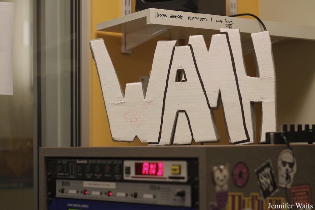 Liu told me that in an attempt to capture the varied artwork, she made a sweatshirt featuring items that she had traced from the wall. “I love the stuff here. It’s really cool reading…conversations people have had that have taken place…across the wall,” she said. Already feeling nostalgic about her time in the current WAMH space, she told me, “I’m going to miss this place a lot.” A junior, she has another full year at WAMH, although next semester the station will look entirely different.