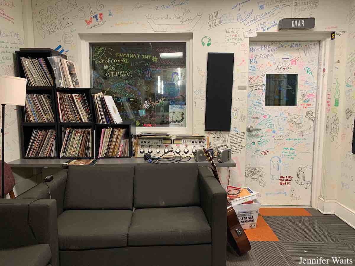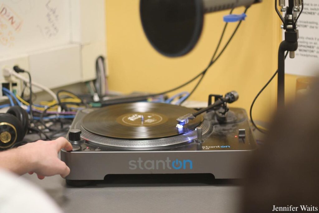 During my Thursday evening visit in early March, the studio was occupied with three live DJs playing pop and hip hop music (and vinyl!) on the show “Hall Pass.” One spoke nostalgically on-air about music they remember from their youth, including the band One Direction and songs that their babysitter used to play in the car. They closed out their show with a request for “Bad and Boujee” by hip-hop group Migos.