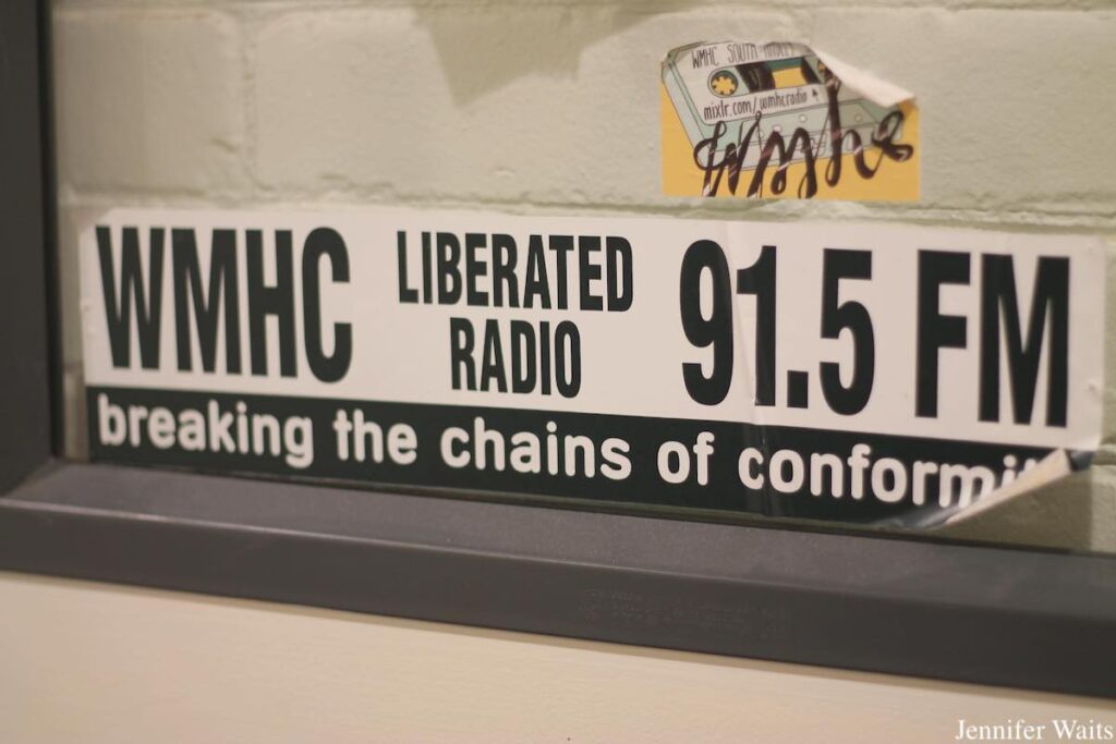 WMHC bumper sticker at the Mount Holyoke College radio station. Photo: J. Waits