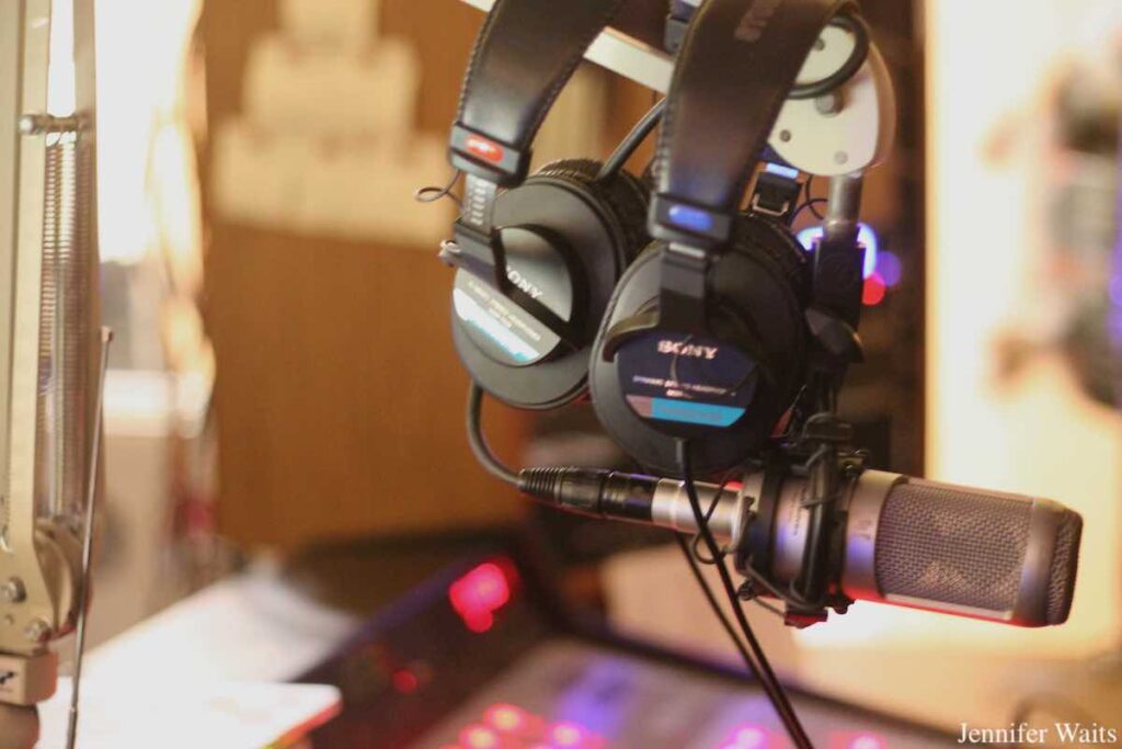 Headphones and microphone in WMHC studio. Photo: Jennifer Waits